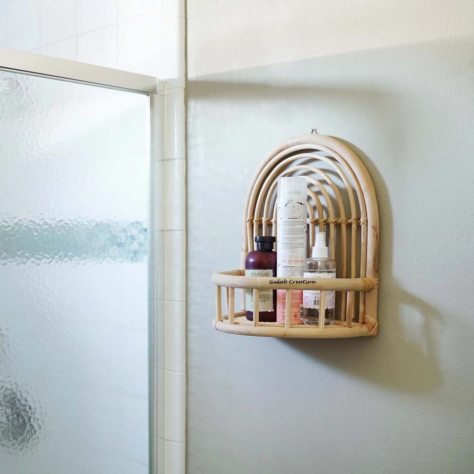 Handmade Wall Hanging Rattan Shelf Storage Boho Style Wall-Mounted Organizer Rack for Bathroom, Living Room, and Home Decor