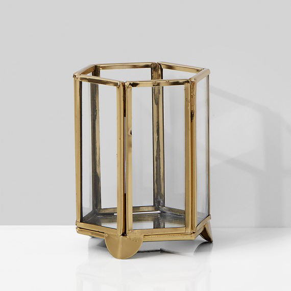 New latest design and wholesale price Gold Metal & Glass Lantern Terrarium Gold Metal & Glass Geometric Candle Lantern Large