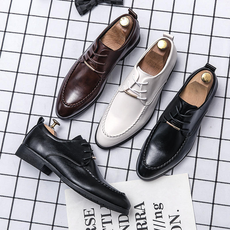 New luxury formal leather lace-up low-heeled derby shoes for formal wedding attire for men, handcrafted shoes