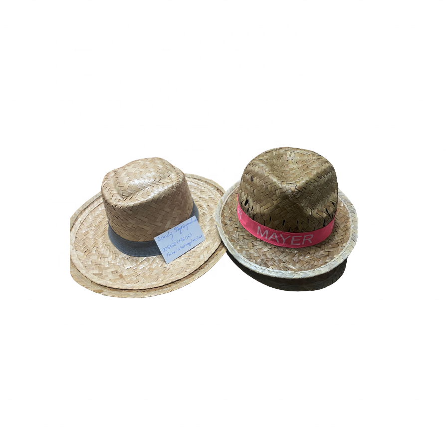 New Customizable Logo Ribbon-Trimmed Seagrass Hat Natural Palm Leaf Straw Hat for Sports or Weddings Bulk Quantity Party Gift