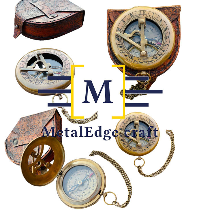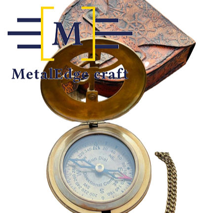 New maritime sundial Nautical Brass Compass in leather box Handmade Brass pointing Compass promotion gift corporate sundirection