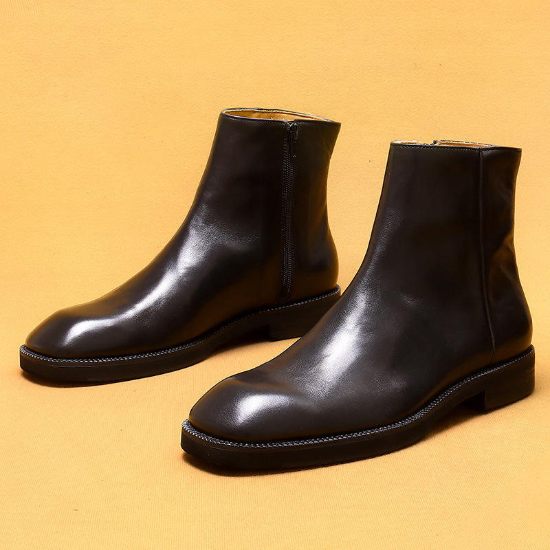New men's genuine leather ankle boots washable Goodyear welted retro fashion Amekaki workwear lace up shoes