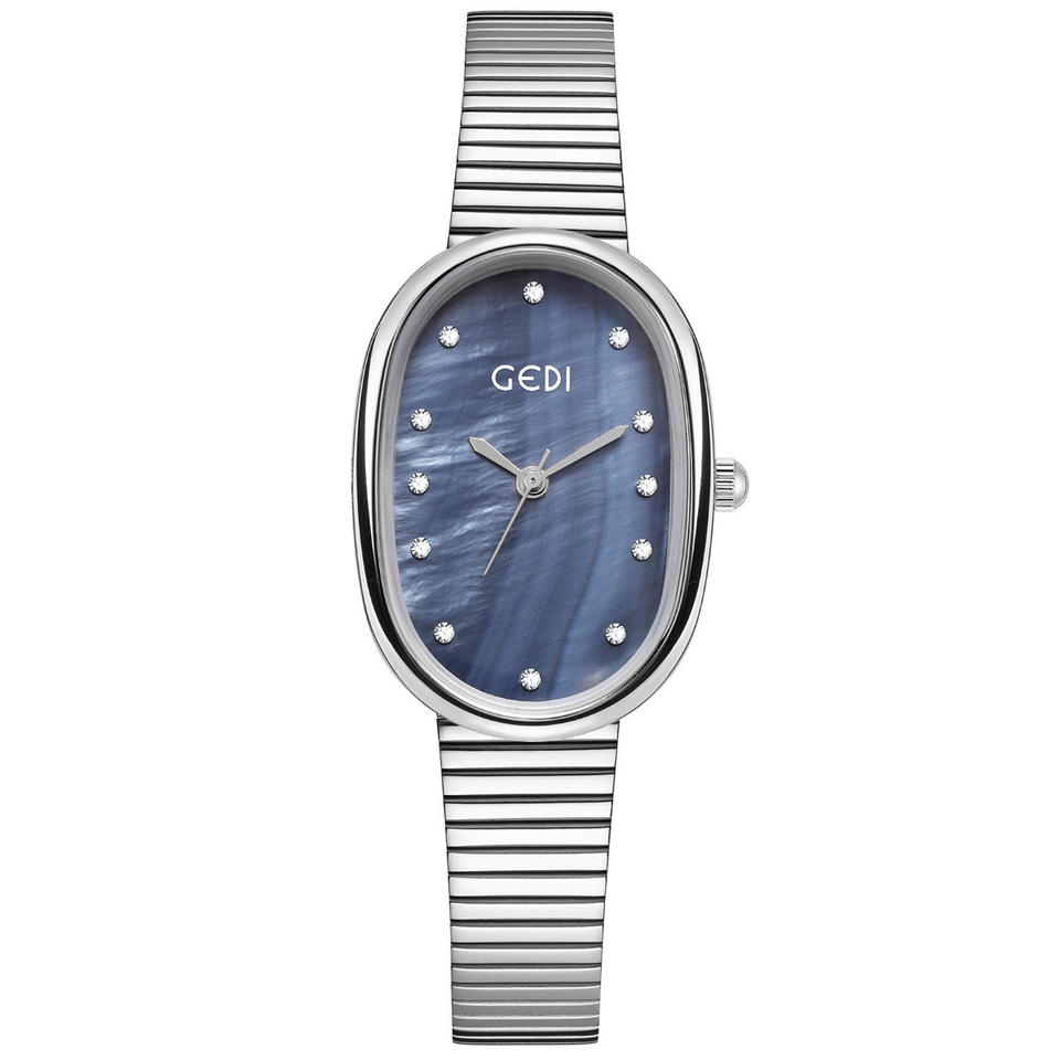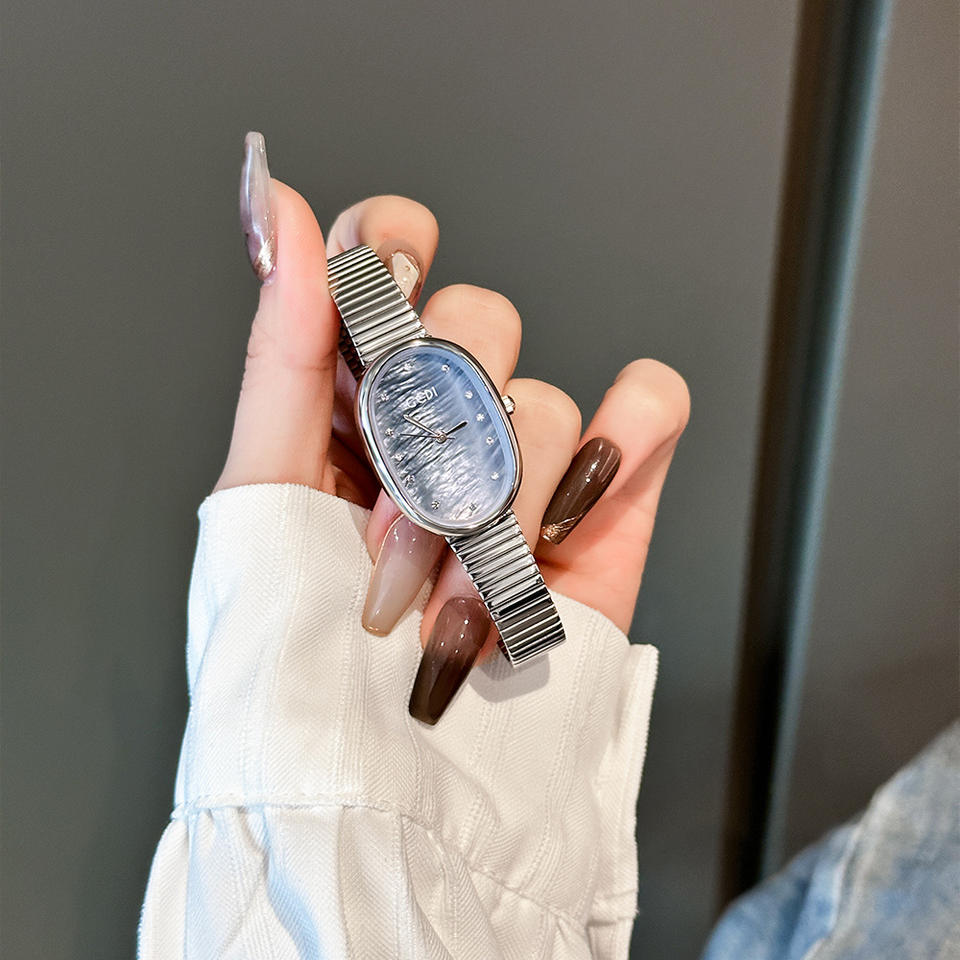 New minimalist style women's watch oval quartz leather strap with mother-of-pearl dial