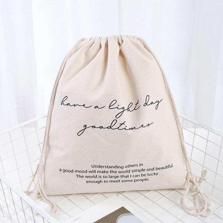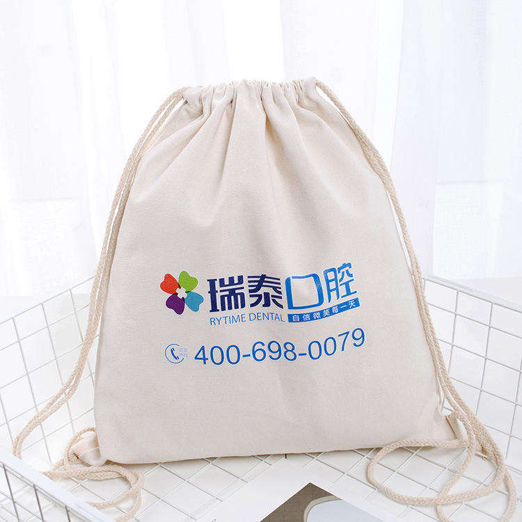 R-004 Eco-Friendly Cotton Tote Beach Bag Medium Size Reusable Canvas with Rope Handle Heat Transfer Printing Dot Letter Pattern