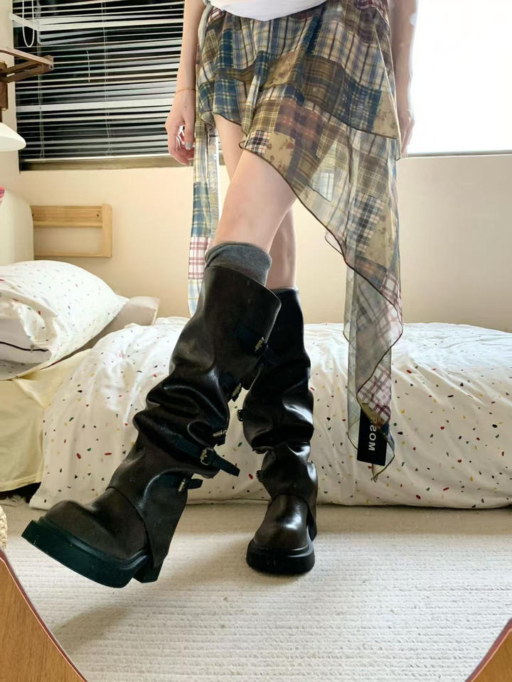 New not over the knee long boot autumn winter retro belt buckle long tube boot Comfortable thick soled height increasing boots
