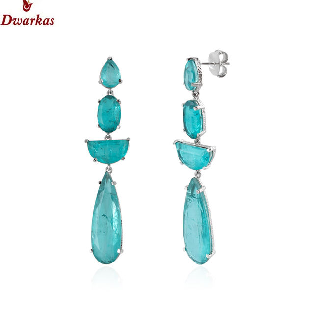 High Quality earrings 925 sterling silver doublet Paraiba color quartz gemstone earring for ladies and girl
