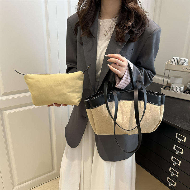 New shoulder bag launched, fashionable and simple portable bucket bag with zipper and large capacity tote bag