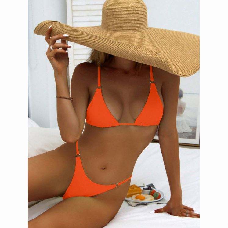 New simple style Summer Two Pieces Bikini Set Swimwear Women Solid Color Sexy String Bikini & Beachwear