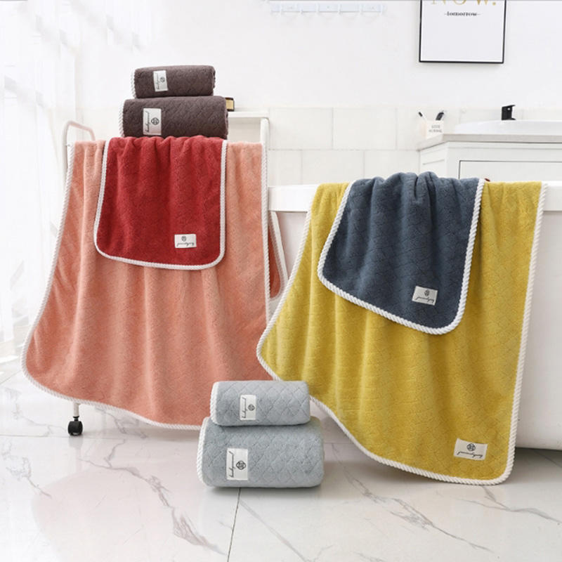 New soft 300gsm skin friendly European style floral coral fleece and bath two-piece set, absorbent towel