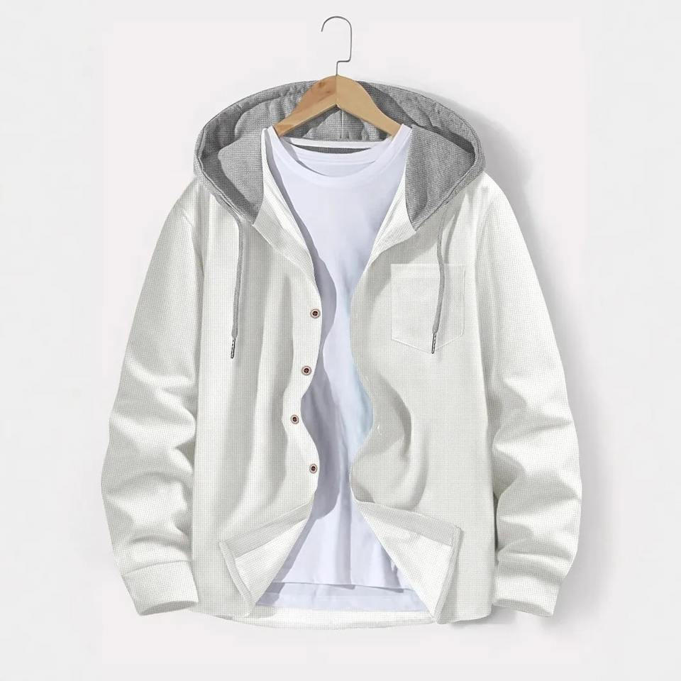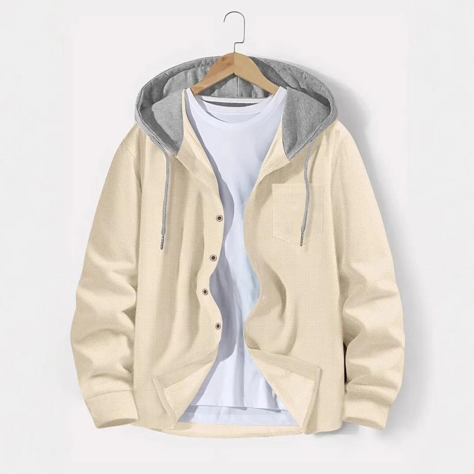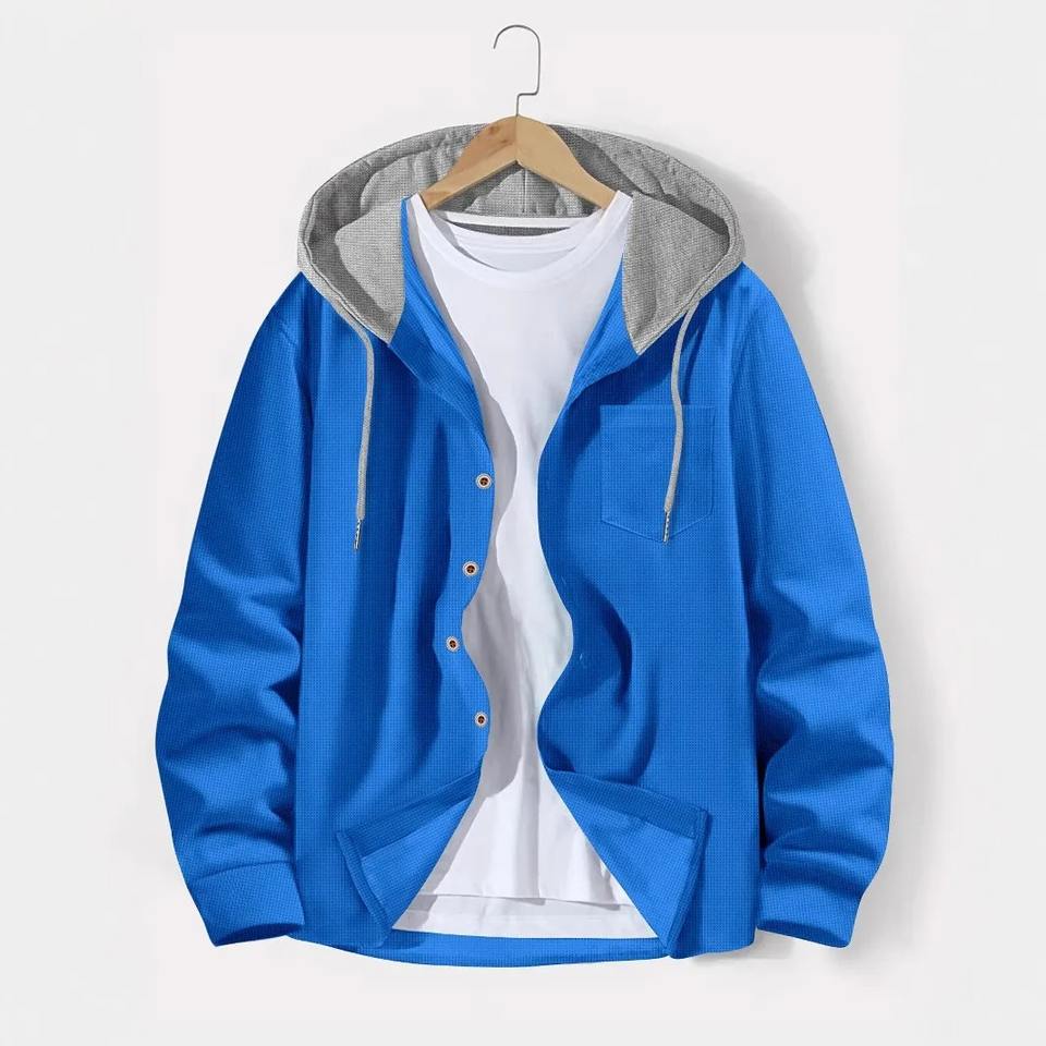 New spring and fall casual men's Waffle Glade hooded shirt pocket button cardigan long-sleeved coat