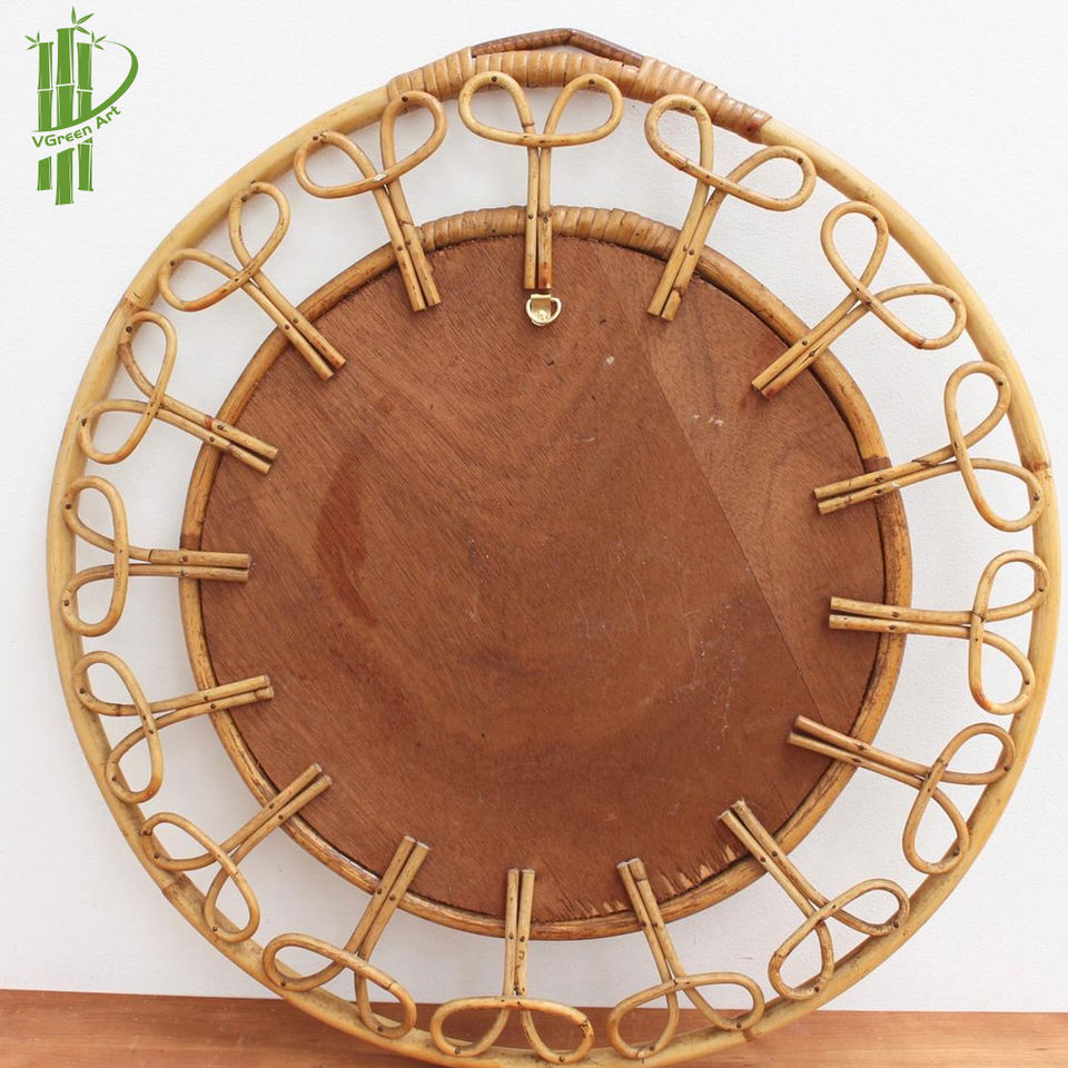 2023 Best Selling Large Circle Rattan Mirror Handmade Bamboo Storage Kitchen Wicker Basket Home Decor Organizing Clothing