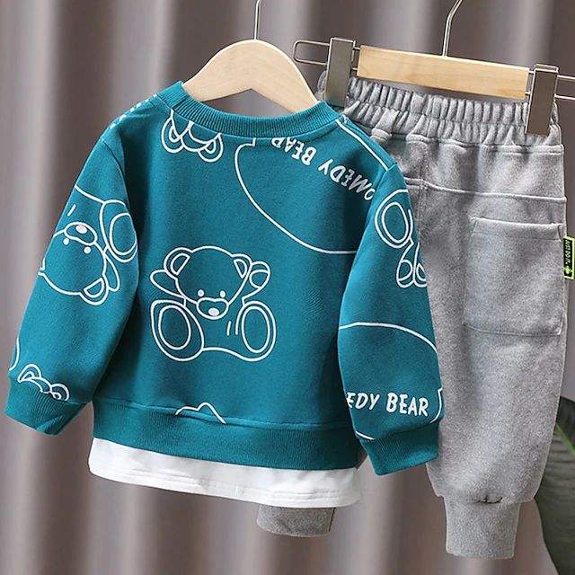 New stylish kids sweatsuits all over printed kids boy or girls fleece sweatshirt set with sweatpants made in Bangladesh