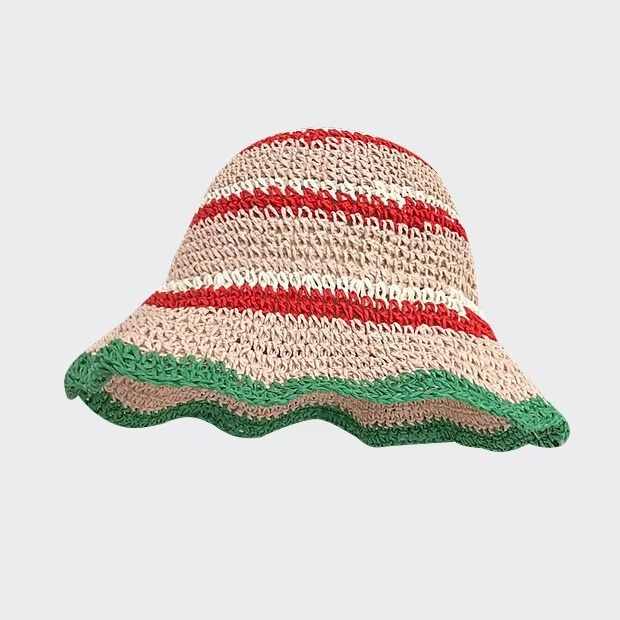 New trend solid color travel back colorful handmade unisex Unique Crochet Striped straw summer wholesale breathable Bucket Hats
