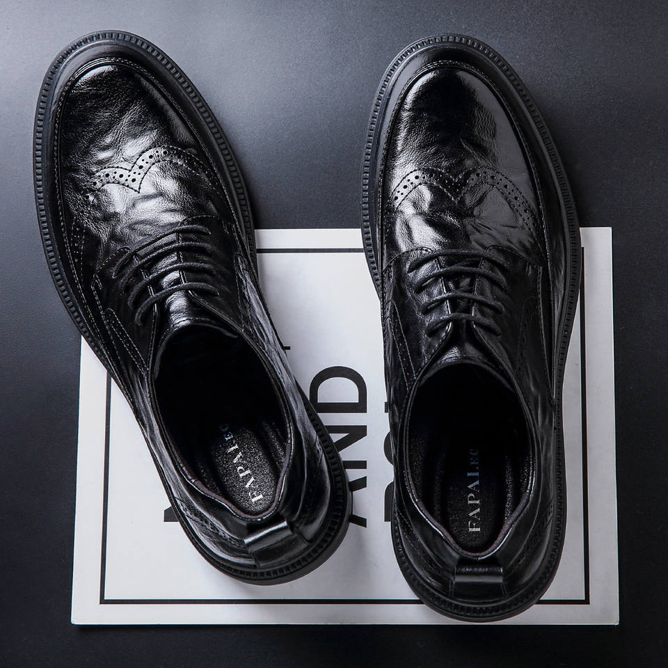 New trendy business formal British men's casual brogue Korean version platform black shoes with height-increasing feature