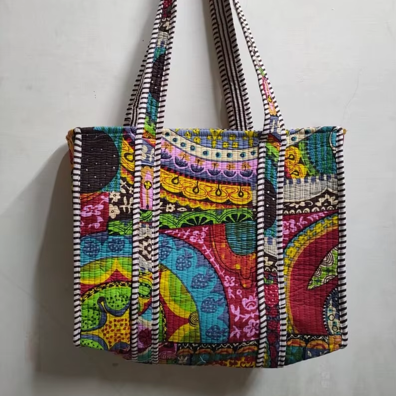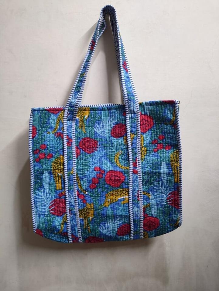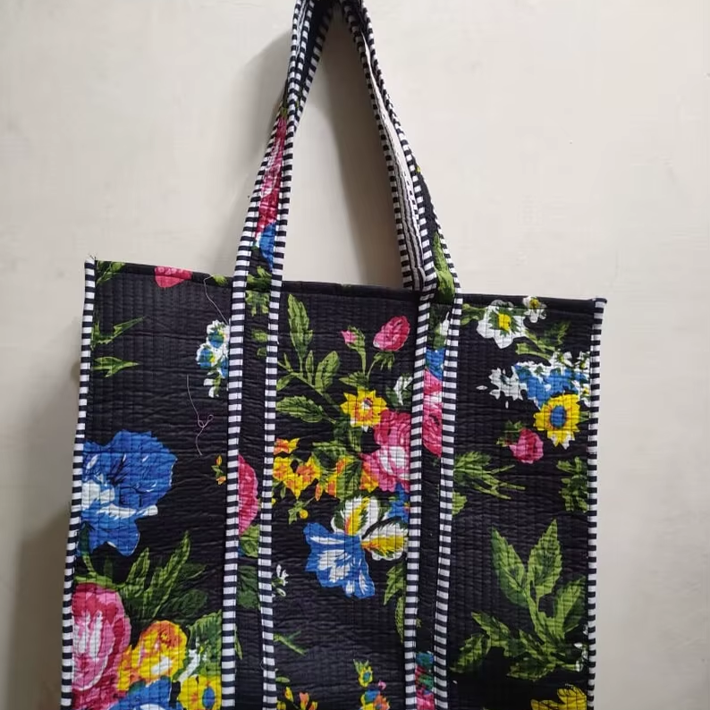 New trendy coton quilted shopping bag floral printed shopping bag reversible grocery carry bag on sale.