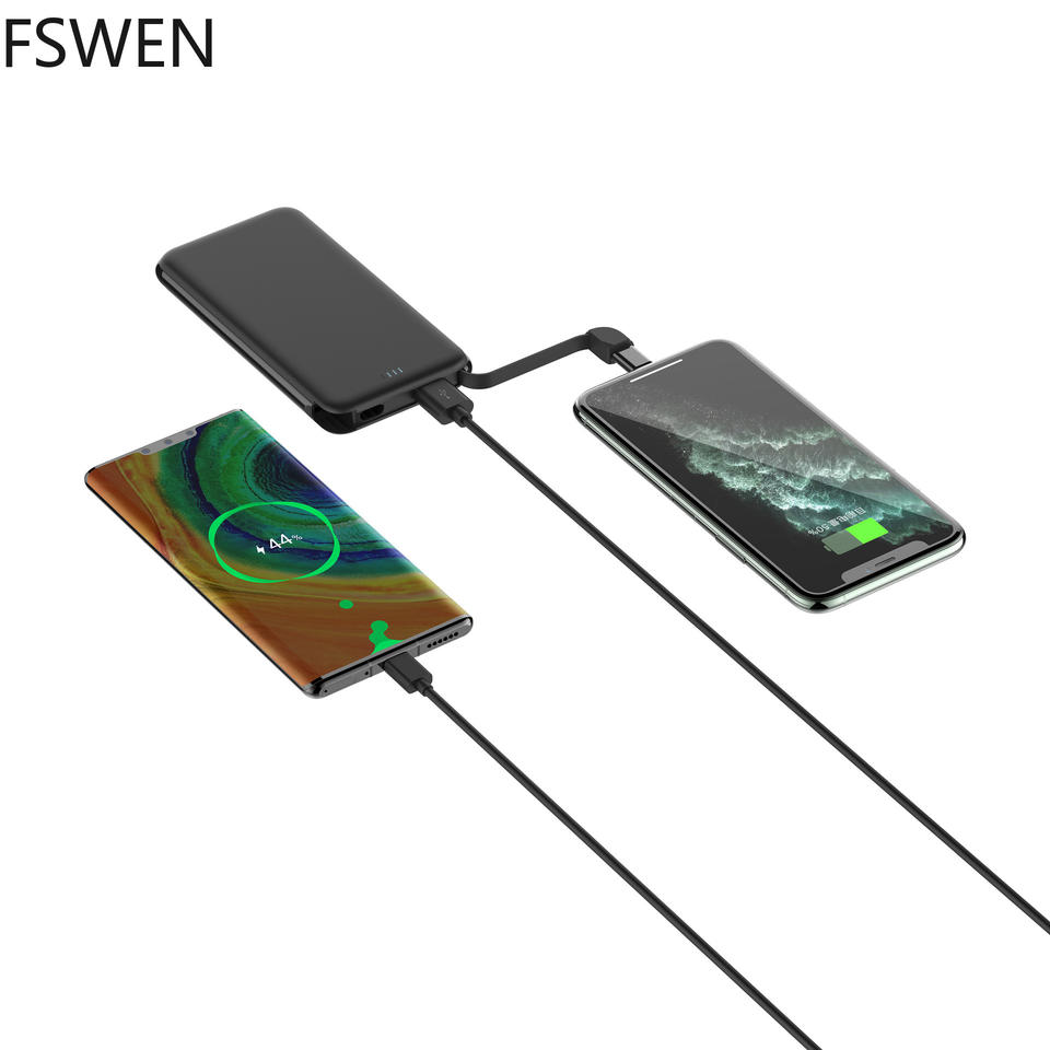 New ultra-thin polymer card mobile power supply 10000mAh 2A charging and discharging with its own cable business card power bank