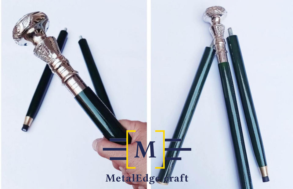 New wholesale 3 Fold 36'' Walking Cane with Brass handle Engraved work Gloss polished wood Solid inlay carving ring Morning Walk