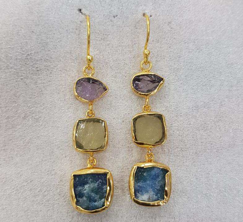 New Wholesale Fashion Drop Earrings Amethyst Saphire Fancy Cut Gemstone Jewelry 24k Gold Plated Brass Gold Plated Multi-Color
