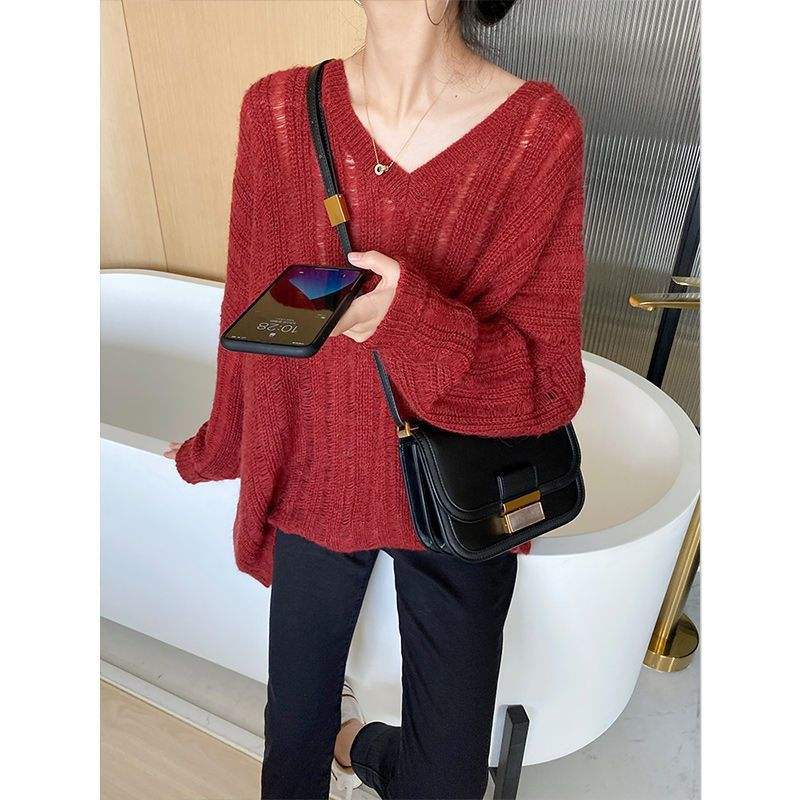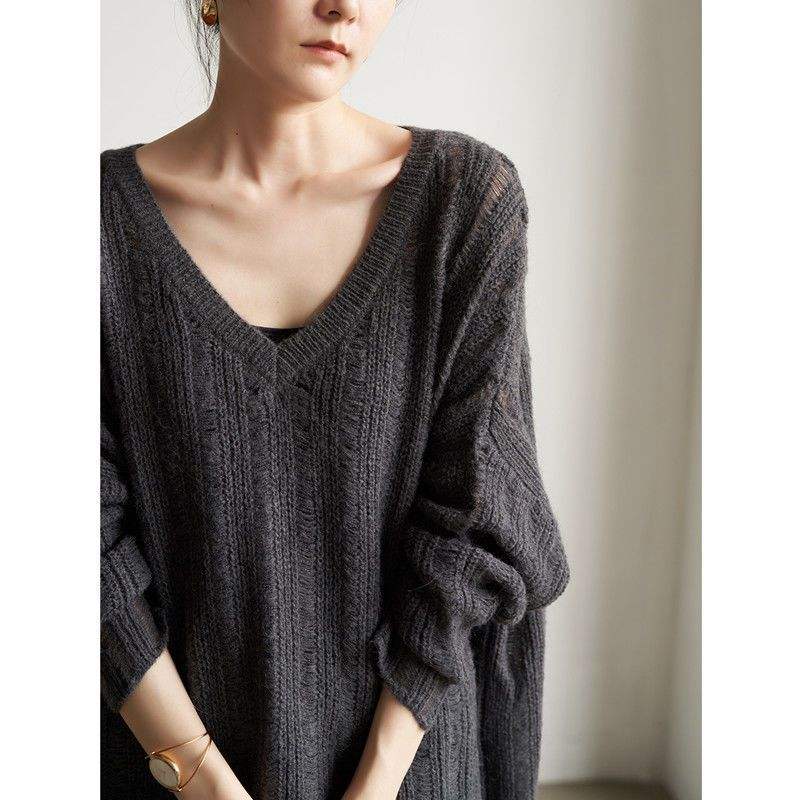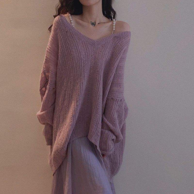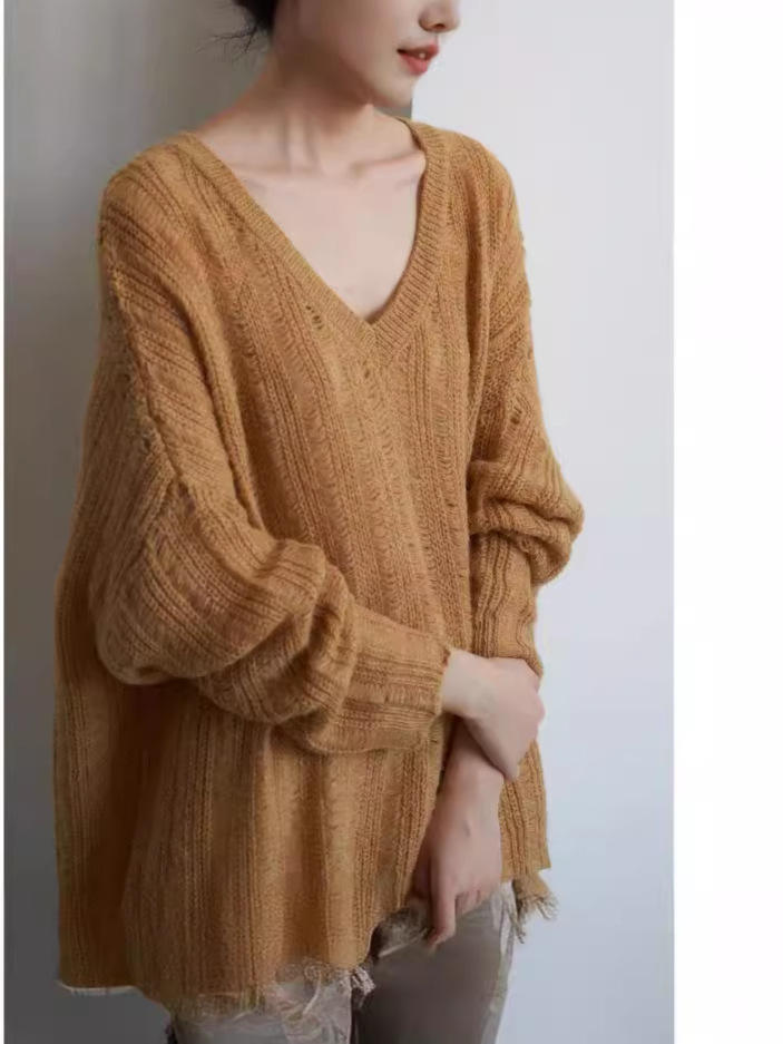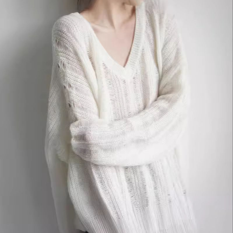 New women's casual sweater slim knitted sweater loose outer wear hole sweater women