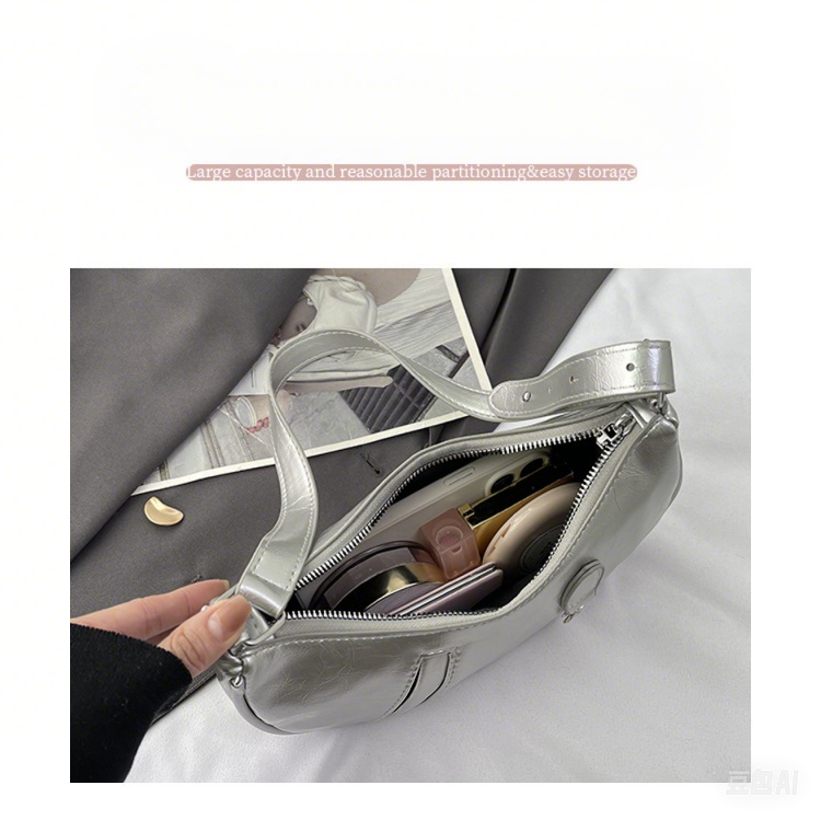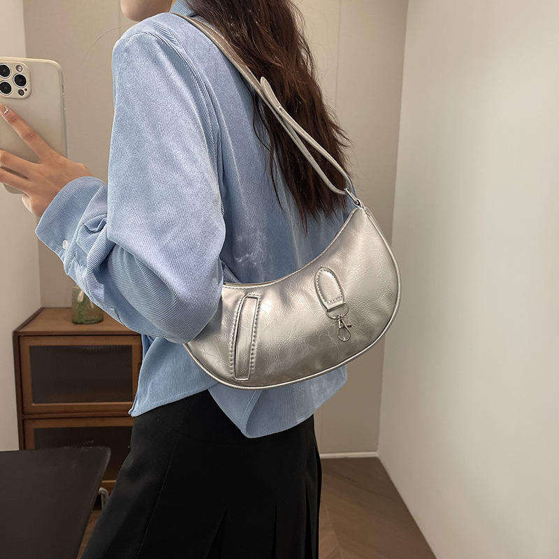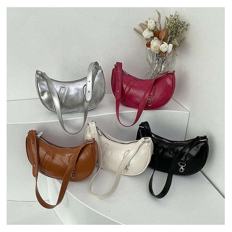 New women's retro underarm bag with niche design, PU material shoulder bag, solid color and fashion