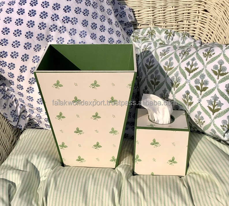 New wooden MDF Abstract Print Enameled Dustbin with matching tissue box From Falak World Export