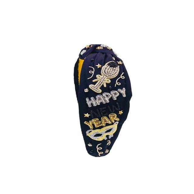 New year seed beaded top knotted headband cheers to new year party vibe beaded hair accessories manufacture hand embroidered