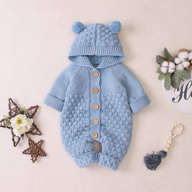 Newborn Infant Knit Onesie Toddler Long Sleeve Sweater Jumpsuit Cartoon Bear Winter Clothes Hot Sale Hooded Baby Romper