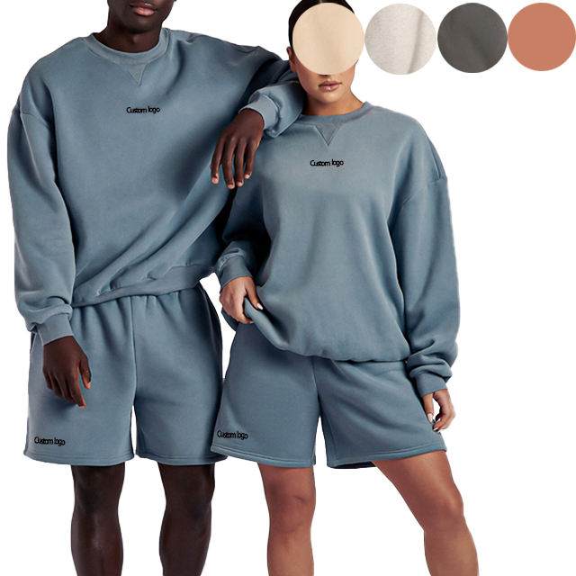 Newest 100% Cotton Fleece Blend Unisex Plain Hooded Oversize Crew Neck Blank Sweatshirt Shorts Set Winter High Street for Men