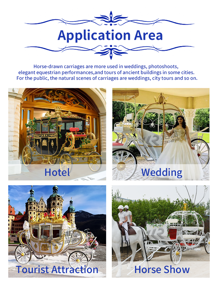 Newest 4-Wheel Horse Drawn Carriage and Electric Carriages for Weddings and Sightseeing Now Available for Sale