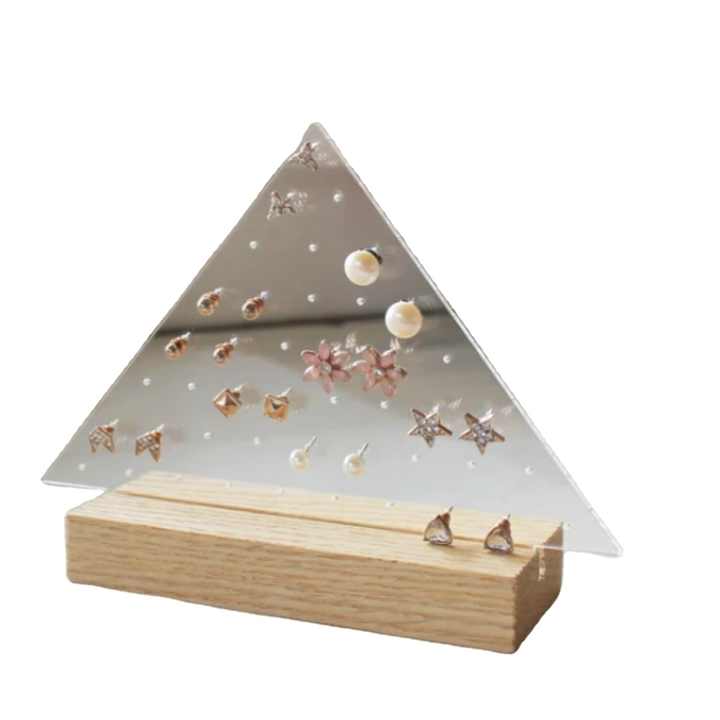 Newest Acrylic Earrings Holder with Wooden Base Many Shape of Top Organizer Earrings Display Stand for Showroom Jewelry Shops