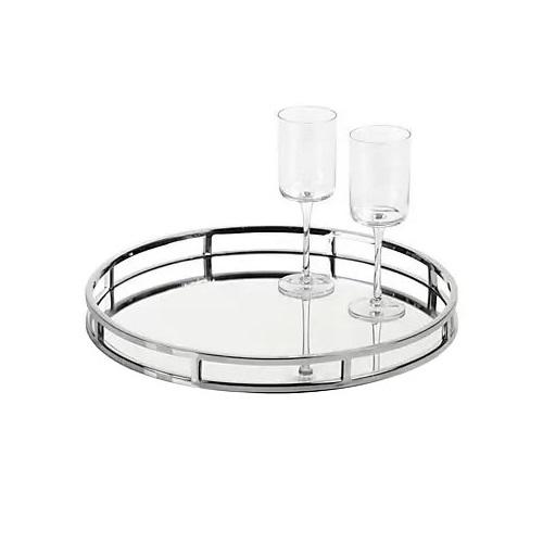 Newest Arrival Round Mirror Tray Shiny Finished Mirror Tray Table Top Decoration American Design Round Glass Mirror Tray