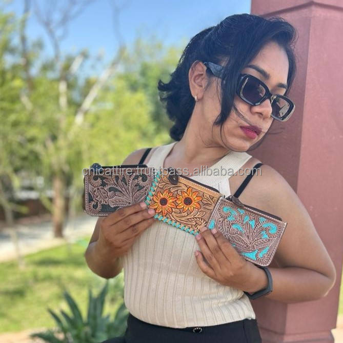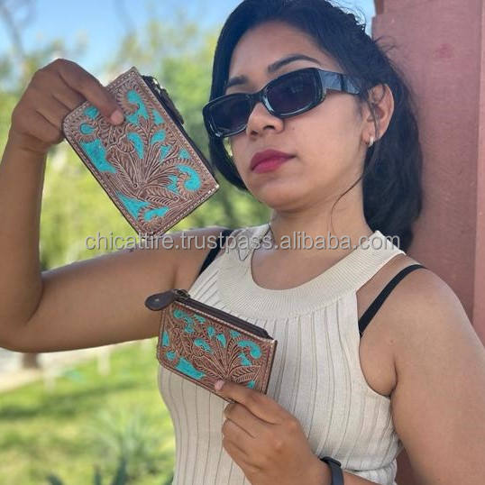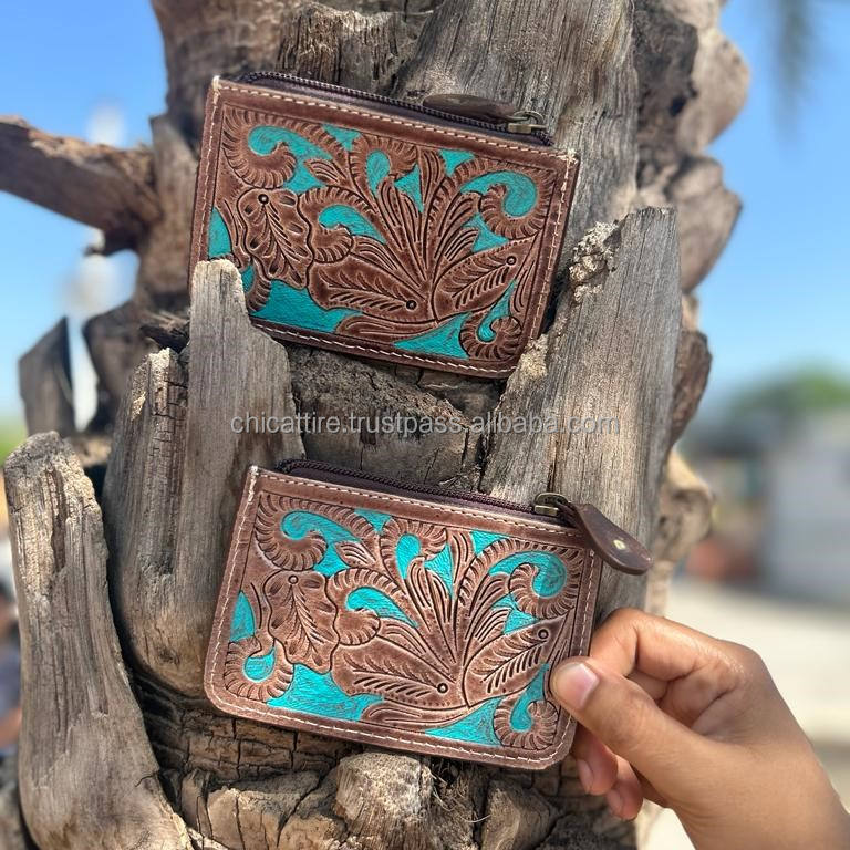 Newest Coin Purse Hand Tooled Carving Small Size Coin Wallet Multi Uses Western Leather Pouches Hot Selling Wallet for Women's