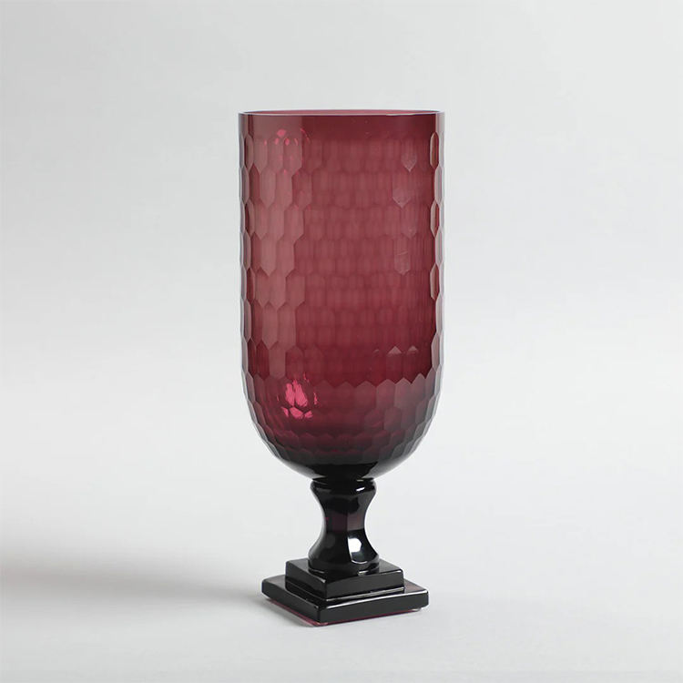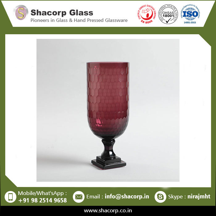Newest Collection Hot Sale Best Custom Design Honeycomb Cut Glass Candle Holder in Amber Color
