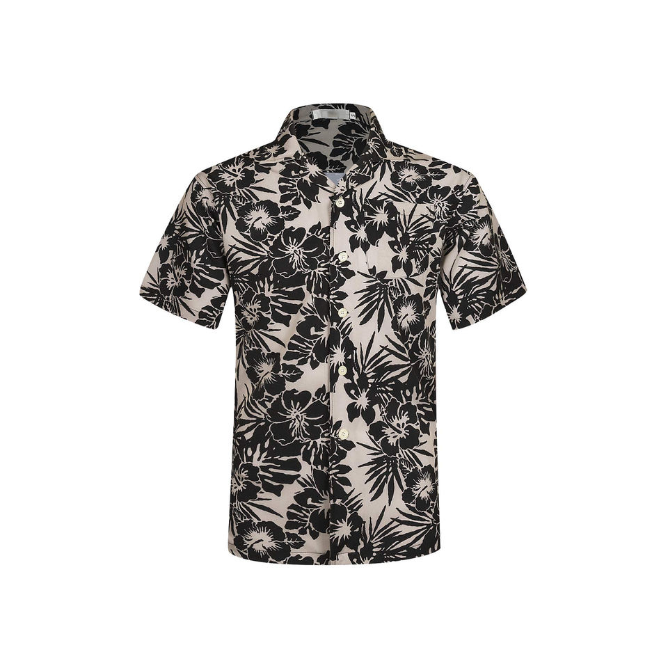 Newest Custom 100% Cotton Poplin Short Sleeve Hawaiian Shirt Men Casual Print Collarless Breathable Anti-Wrinkle Quick Dry