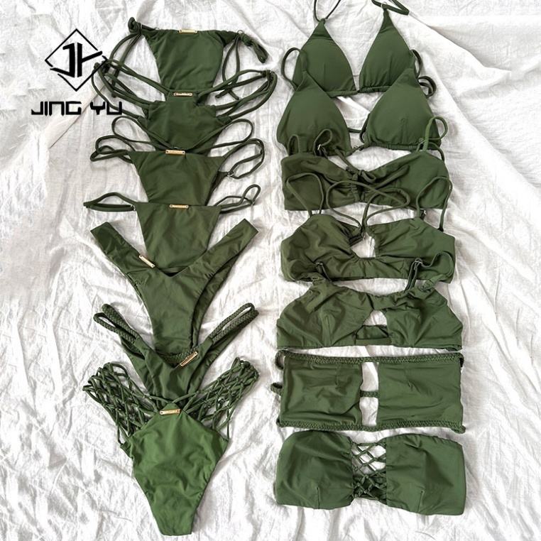 Newest Custom Vintage Swimwear Logo Bikini Two Piece Set Custom Satin Braided Bikini Women