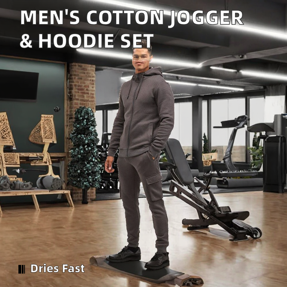Newest Customized Mens Spring Jogger Zip-Up Hoodie + Sweatpants 100% Cotton Drawstring Quick Dry Breathable Tracksuit Set