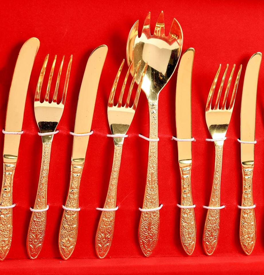 Newest Design Brass Cutlery Set of 4 Pcs Gold Color Flatware for Dining Room Hotel & Restaurants Fork Knife & Spoons Cutlery Set