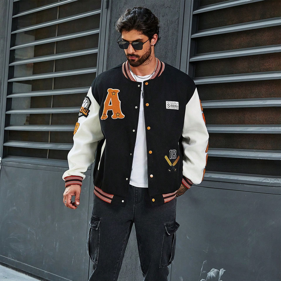Newest Design Comfortable Unique Design Easy To Wear Loose Fit Men Wear Plus Size Color Block College Baseball Varsity Jackets