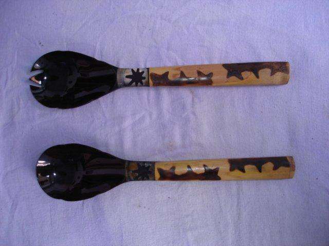 Newest Design Decent Wooden Brown & Multi-Color Salad Server Set With Handle For Home & Hotels Tabletop Salad Mixing Used Tools