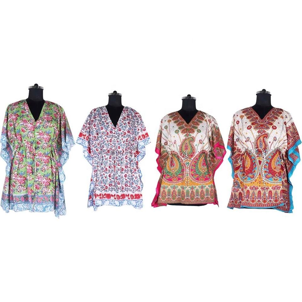 Newest Design Elegant Beach Wear Short Kaftans Women Fashion Tunic Tops Beach Wear Casual Dress Bat Wing Sleeveless Short Kaftan