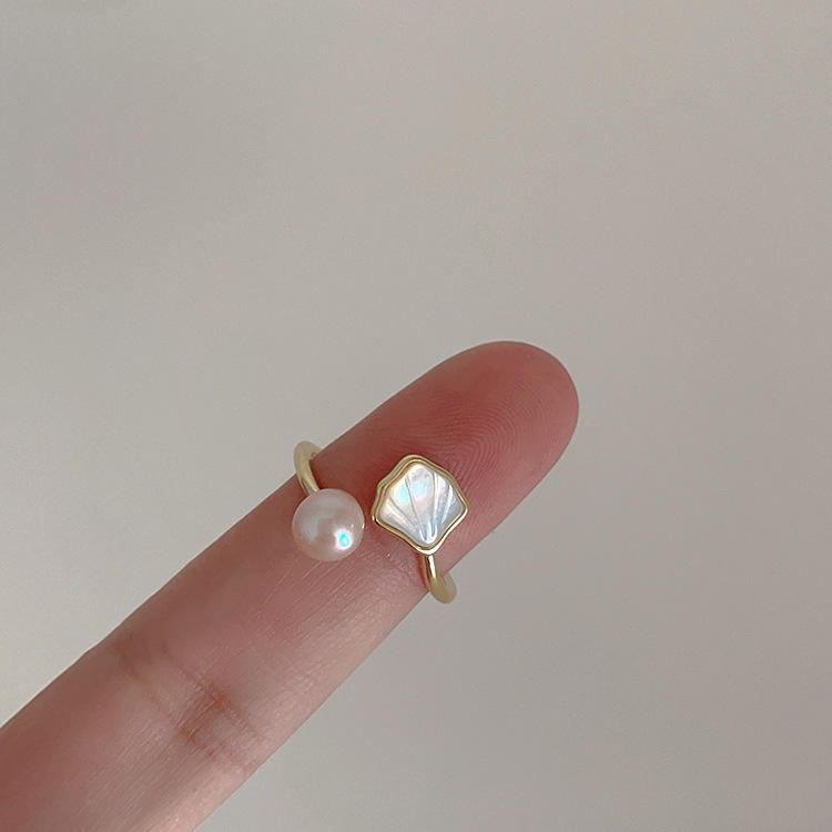 Newest Design Fashion Zircon Shell Ring Light Simple Adjustable Shell Pearl Ring for Women