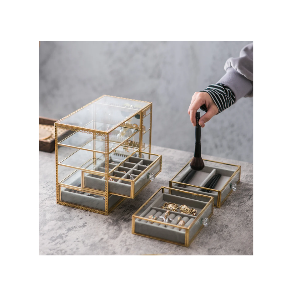Newest Design Glass and Metal Jewelry Storage Box for Beauty Personal Accessories Jewelry Box at Low Price