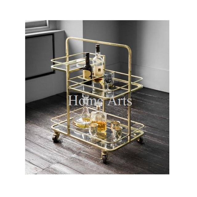 Antique Design Food Serving Trolley With Wheels Handmade Metal And Glass Serving Cart Trolley At Lowest Price