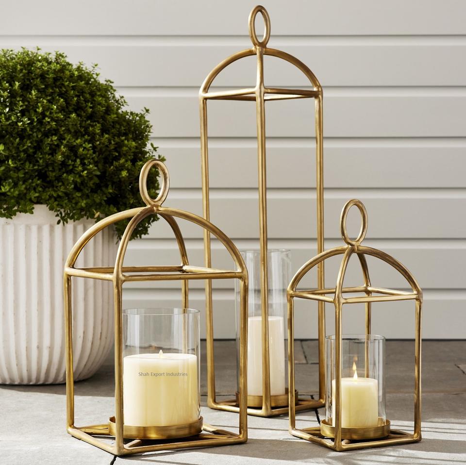 Newest Design Gold Finished Fallon Forged Iron Outdoor Lantern Handmade Hanging Candle Lanterns Available Low Prices