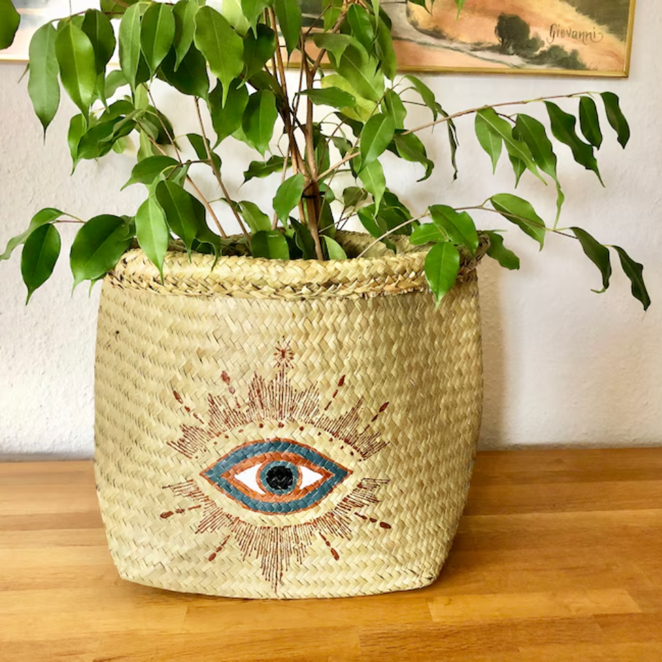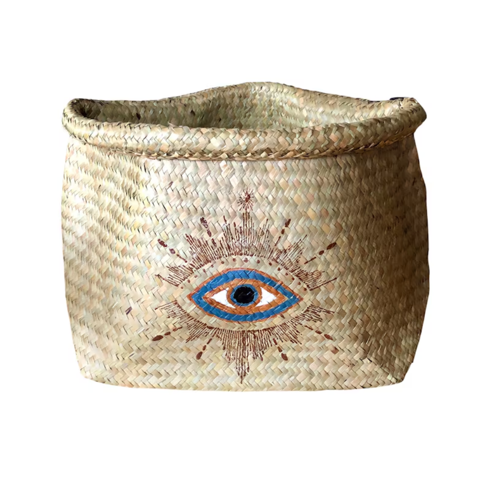 Seagrass Basket with hand painted Evil Eye