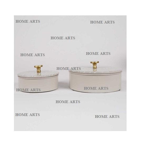 Newest Design Iron Sweets Box With Lid Superior Quality Round Shape Dates Dry Fruits Serving Box By Home Arts