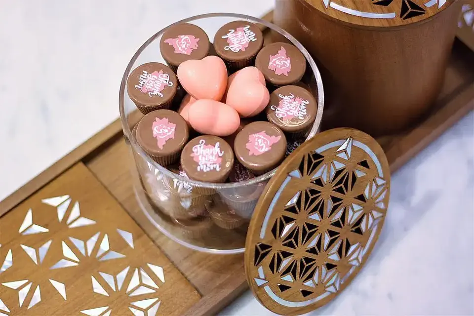 Newest Design MOP Inlay Wooden Tray with Acrylic Chocolate Box Luxury for Eid Ramadan Gift Handcrafted From Vietnam