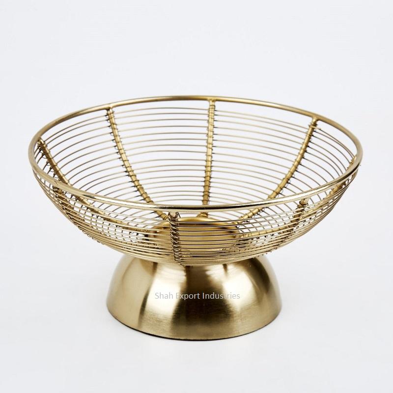 Newest Design Metal Wire Gold Color Flower Bowl With Base for Home and Wedding Tabletop Decoration Flower Vase