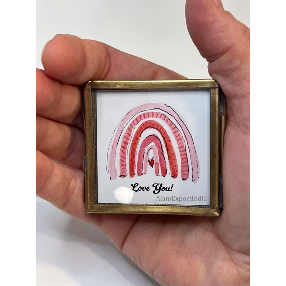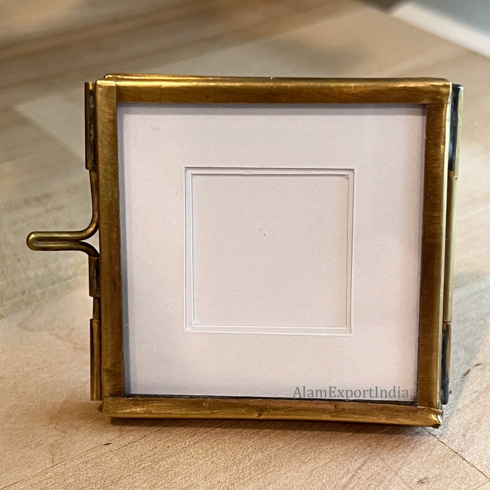Newest Design Square Mini Clear Glass Tabletop Decorative Brass Border Mini Photo Frame Pressed Flower Decorate Wedding Pictures