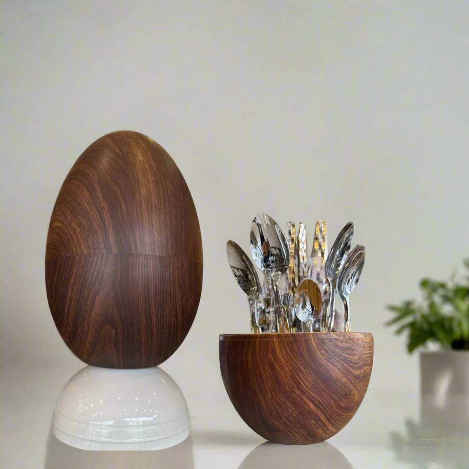 Newest Design Wooden Cutlery Egg Shape Holder for Home Restaurant & Dinnerware Set Brown Color Spoon Knife & Fork Dinnerware Set